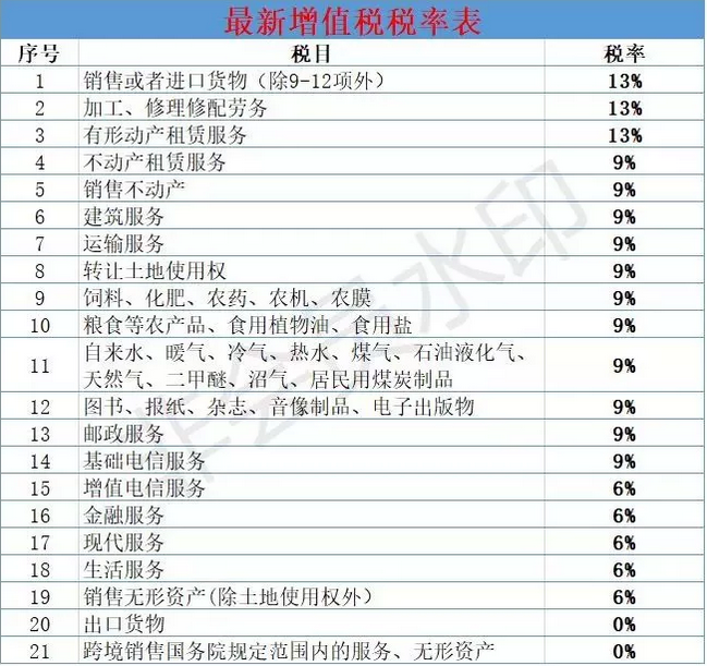 附2019年最新增值稅稅率表