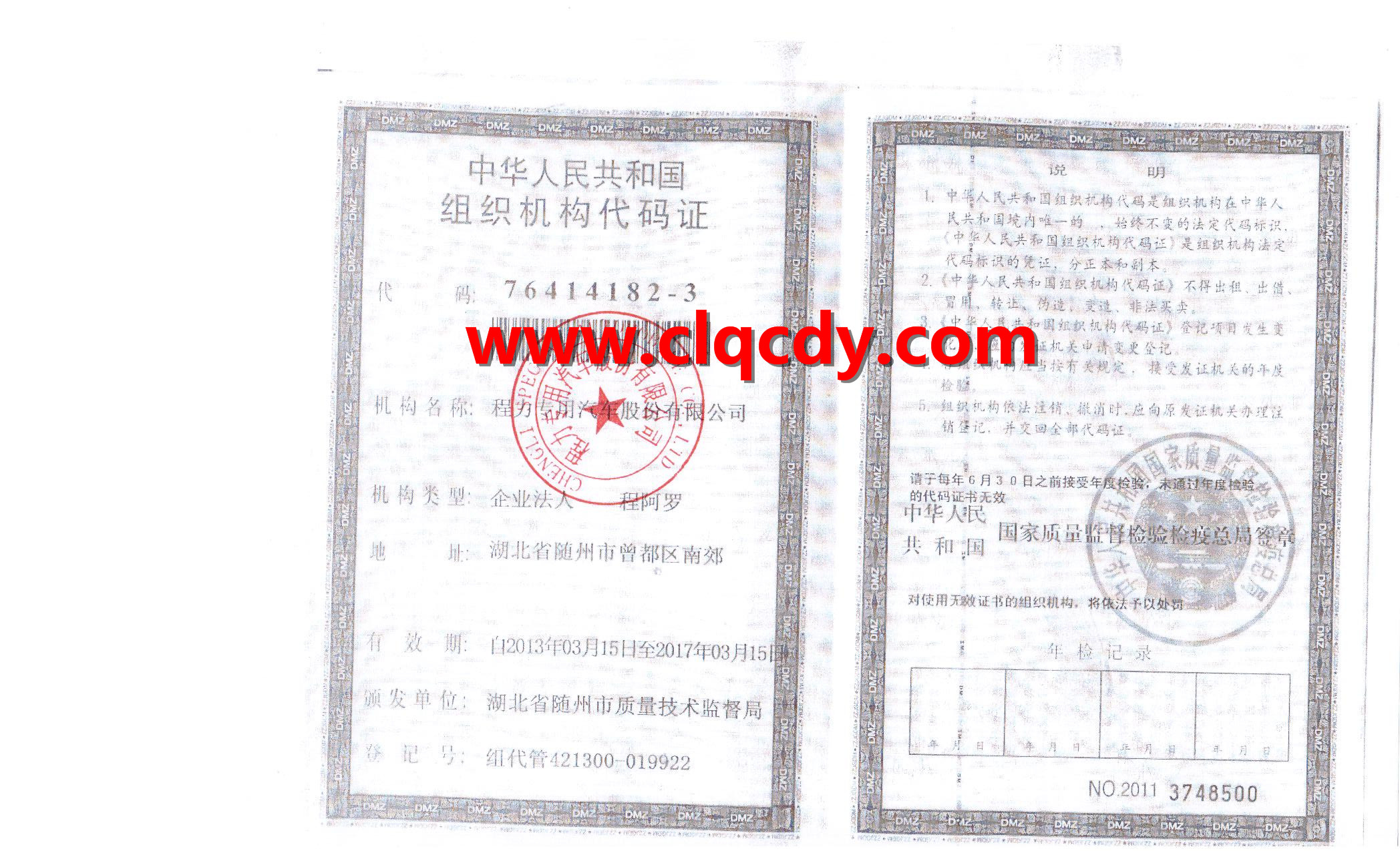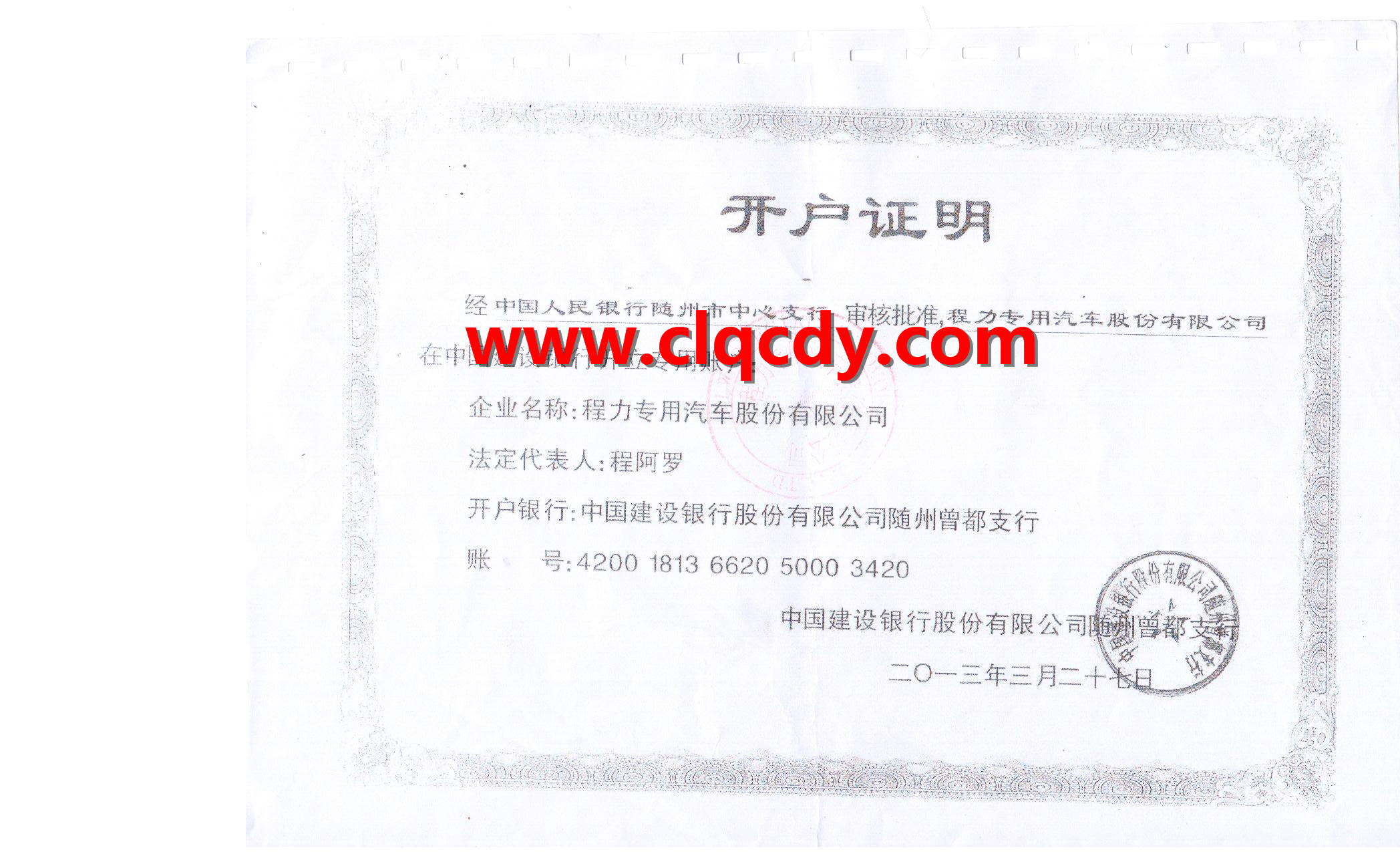 湖北程力營業執照、組織機構代碼、稅務登記證、開戶證明。