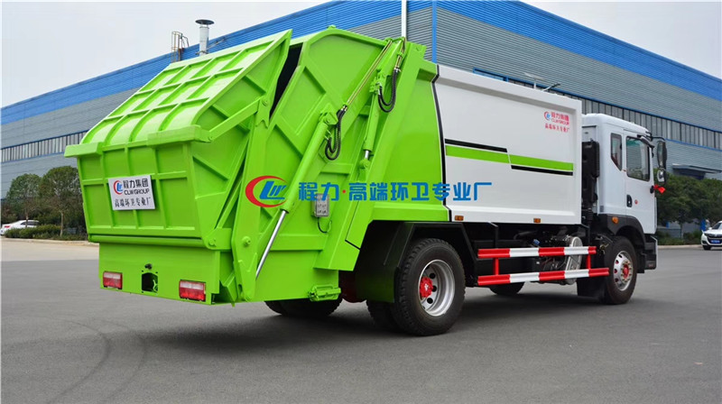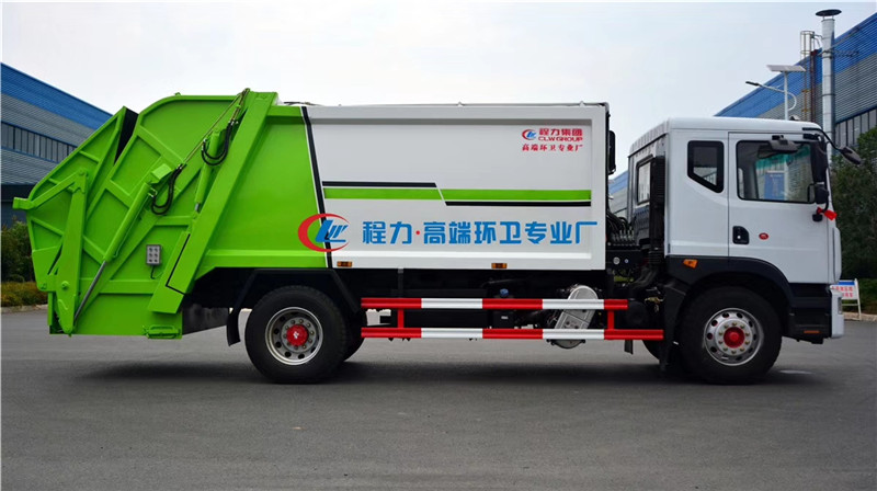 4、智能操作系統(tǒng)采用西門子PLC一鍵循環(huán),駕駛室內與車外均有電控操作盒,后尾部左右各帶一個操作盒。駕駛室室內卸料時操作,外部裝料時操作,另帶有一套手動應急操作,同時設有電子自動油門,不在需要人工加減油門來調節(jié)工作速度,一個司機就可以完成全部操作,也可減少或避免野蠻加油而導致液壓系統(tǒng)故障。 湖北程力汽車壓縮垃圾車國六東風D9壓縮垃圾車多方位圖片展示:
